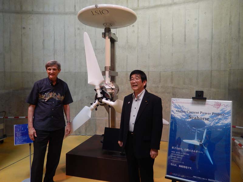 中でも、写真に示すように潮流発電モデル実験機の開発等にも取り組んでおられ、今後の海洋環境、海洋エネルギーなどの、実践的な活動に大いに期待される大学だと思いました。