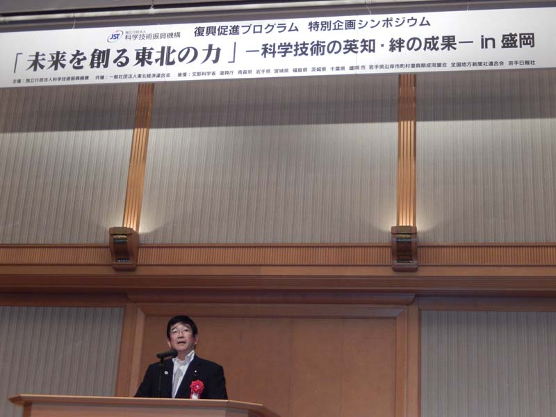 復興促進プログラムである、シンポジウム「未来を創る東北の力-科学技術の英知・絆の成果-in盛岡」 に出席してまいりました。