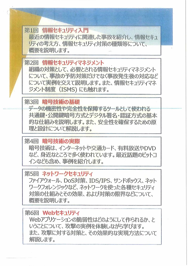 長崎県立大学シーボルト校で10/22(土)社会人のための情報セキュリティ連続セミナー 第1回情報セキュリティ入門が13:00~14:30開催され、私も出席いたしました。