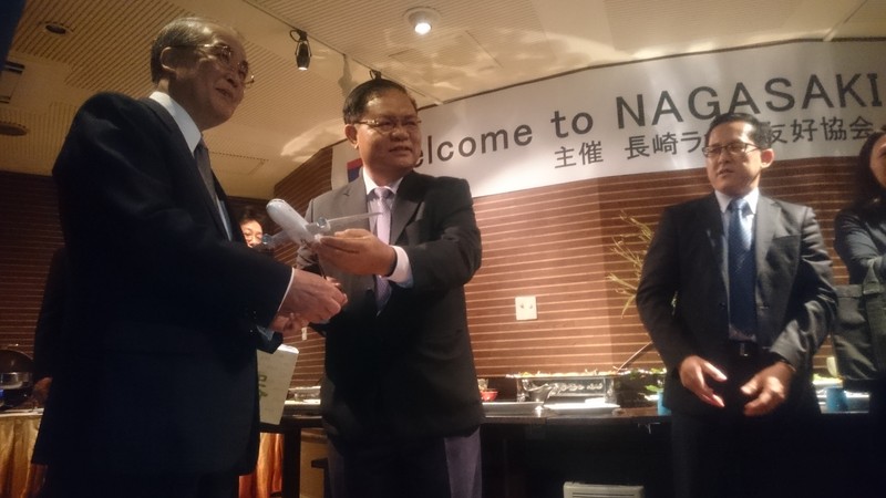 稲佐山頂上のひかりのレストランで歓迎レセプションが開催され、中村知事、長崎ラオス友好協会の本田会長ほか経済界からも関係者大勢参加をされました。