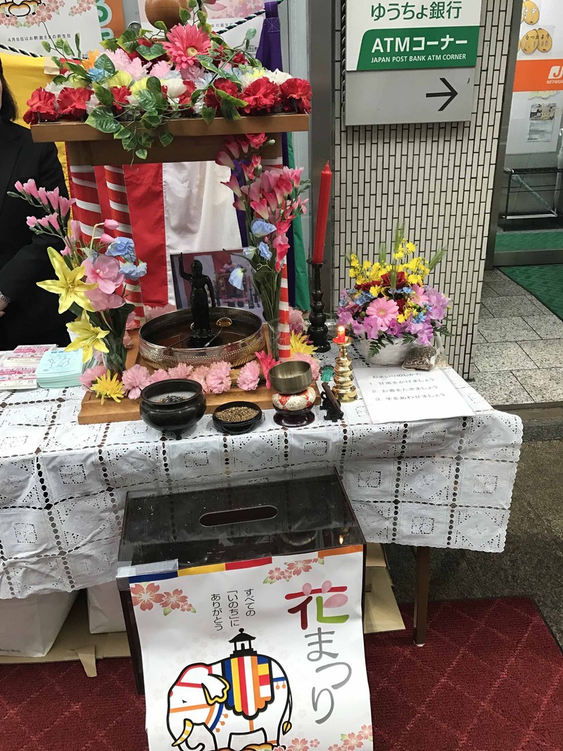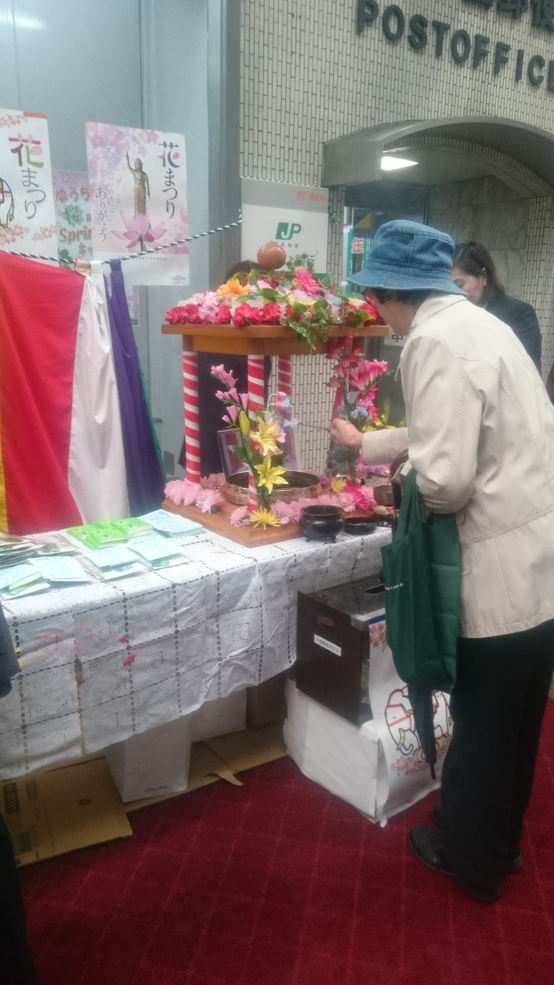 釈尊降誕奉祝花祭り 未分類 Twitter Facebook はてブ Pocket LINE コピー 2017.04.10 2017/4/8(土) 中園銀座商店会にて開催されました釈尊降誕奉祝花祭りに参加いたしました。 あいにく当日は朝から雨が降りましたが、多くの方が参加されました。 私も甘茶をいただきました。甘かったです。