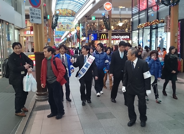 最終日 選挙 Twitter Facebook はてブ Pocket LINE コピー 2014.12.13 古賀友一郎参議院議員らとともに、賑町から浜町アーケードを練り歩き、鉄橋での最後の街頭演説。 長崎を日本を元気にするために「景気回復、この道しかない」 なんとしてでも景気回復!