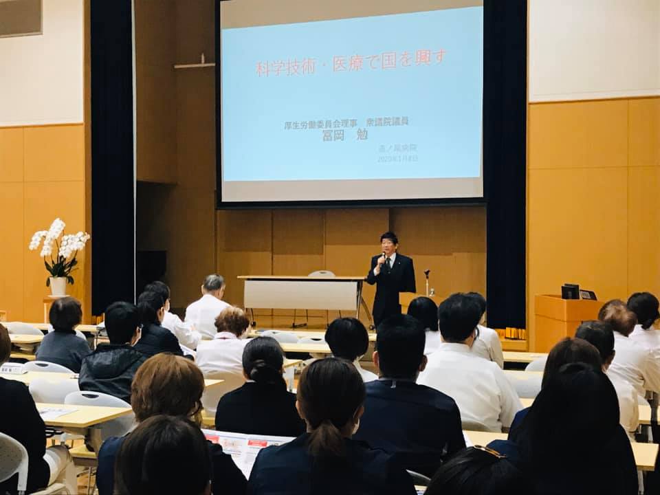 道ノ尾病院 勉強会における講演 医療政策 Twitter Facebook はてブ Pocket LINE コピー 2020.01.20 2020/1/8(水) 道ノ尾病院の水曜会(勉強会)で、「科学技術・医療で国を興す」と題して講演をさせていただきました。 貴重なお時間をいただきありがとうございました。