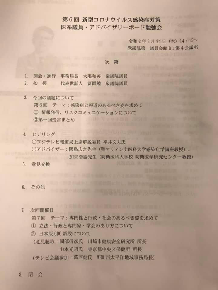 第6回「新型コロナウィルス感染症対策 医系議員・アドバイザリーボード勉強会」が開催されました。