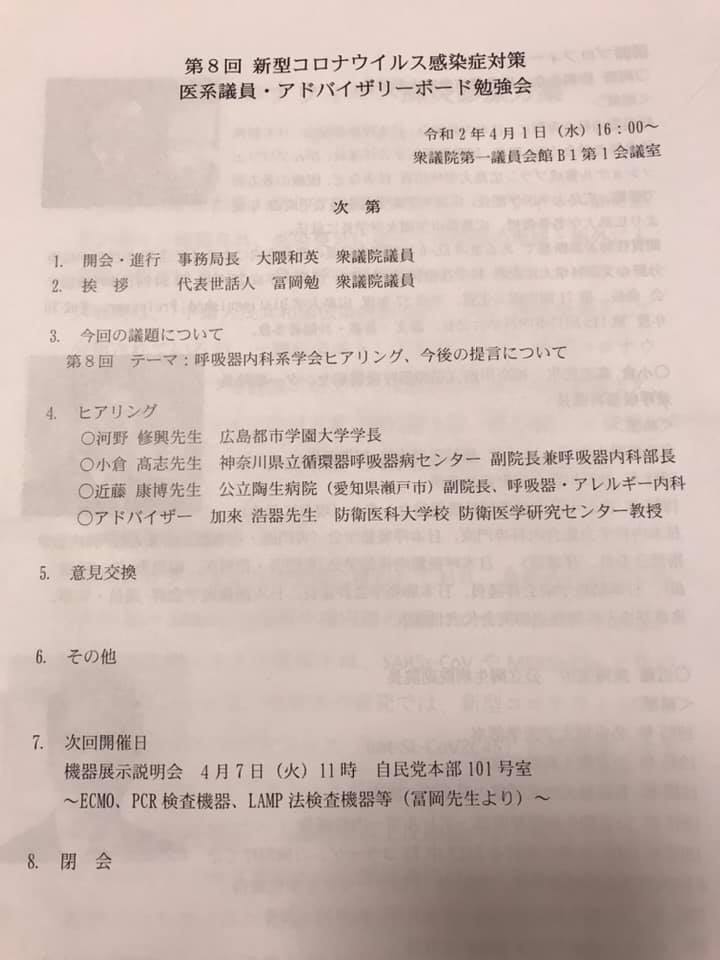 第8回 「新型コロナウイルス感染症対策医系議員・アドバイザリーボード勉強会」 新型コロナウィルス対策 Twitter Facebook はてブ Pocket LINE コピー 2020.04.03 2020/4/1(水) 第8回 「新型コロナウイルス感染症対策医系議員・アドバイザリーボード勉強会」に参加しました。 冨岡 勉さんの投稿 2020年4月2日木曜日