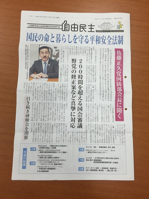 自由民主に・・・ 国政 Twitter Facebook はてブ Pocket LINE コピー 2019.08.262015.10.08 東京事務所より更新です。 今日は朝からすっきりとした青空の気持ちの良いお天気。 『自由民主2015.10.13号』を見ていたら・・・ 見つけました! 冨岡が載っています。 是非ご覧ください!
