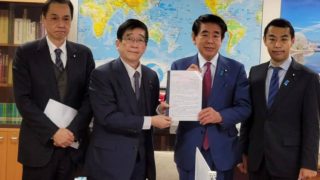 新型コロナウイルス対策医系議員アドバイザリーボードとして、二階幹事長、稲田朋美幹事長代行、林幹雄幹事長代理、金田勝年幹事長代理への提言申入れを行いました。(衆議院内自民党幹事長室にて)。