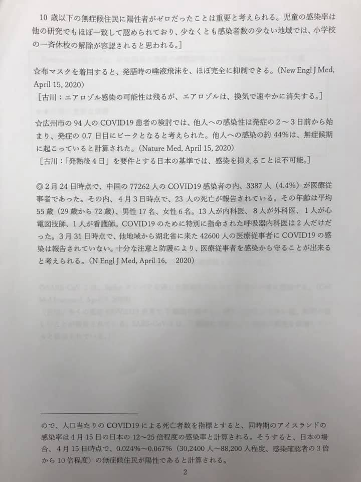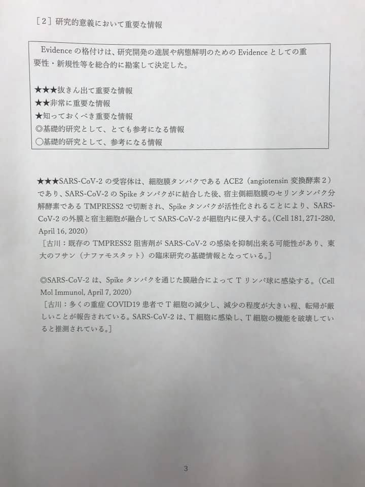 今回は、政治家・医師・弁護士・大学(院)教授・会社代表取締役などの顔を持たれ、未だ日頃より海外の原著論文を読まれる古川俊治副本部長(情報収集・学術担当)から、「Significant Scientific Evidences about COVID19」(2020年4月17日)と題する資料をご提供いただきました。