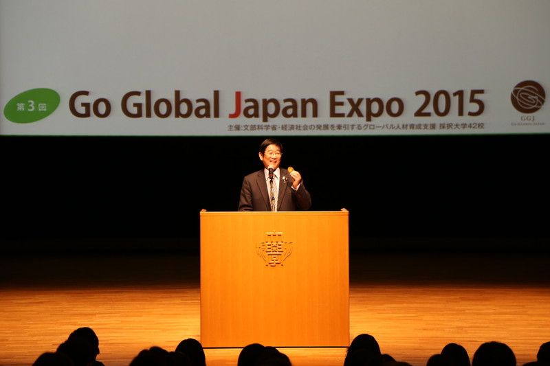 文部科学省では、平成24年度から「経済社会の発展を牽引するグローバル人材育成支援」(愛称:GGJ(Go Global Japan)によって、グローバルな舞台に積極的に挑戦し、世界で活躍できる日本人を育成するための大学の取り組みを支援しています。今回のExpoはその事業の採択大学をはじめとする全国57大学が参加し、各校の取り組みを知っていただくことを目的に開催されました。