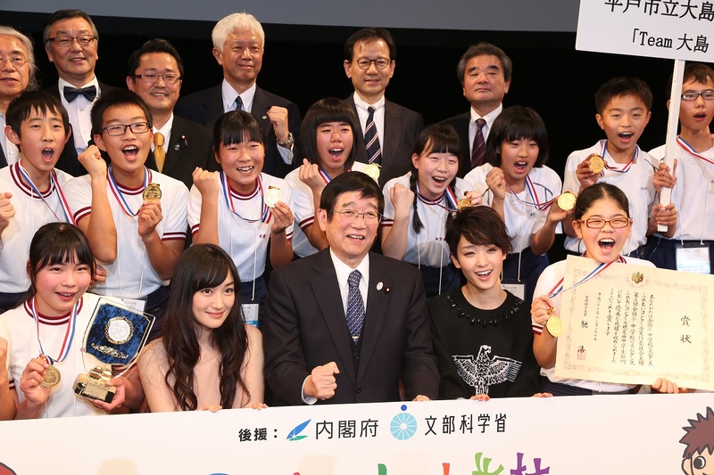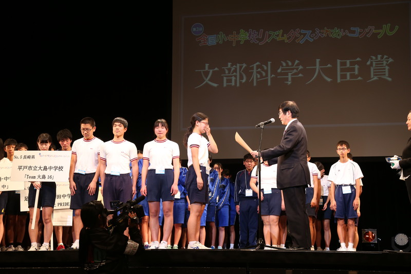 第三回全国小中学リズムダンスふれあいコンクールが東京赤坂のTBSホールで開催され、中学部門で平戸市立大島中学が優勝し、文部科学大臣賞を授賞されました。昨年度の準優勝に続く快挙でした。私は馳大臣の代理で表彰式に出席させて頂きました。審査委員長の説明では上位三チームは一点差を争う僅差だったそうです。たまたま出くわした僕も大変嬉しくなりました。1月2日にTBS系で放映予定です。 おめでとうございました!\(^-^)/