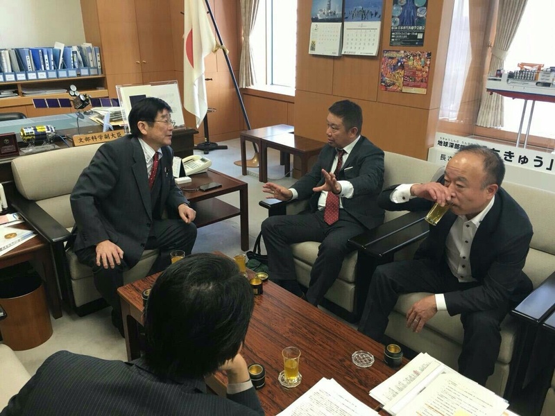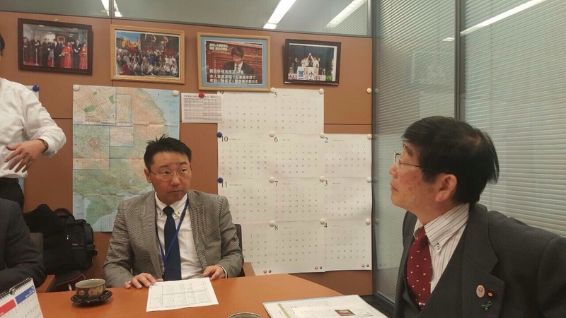 りょうさい会の会長の山田吉盛さん、平野さん、杉本さん、山田忠利さんの四人の方が東京事務所を訪ねてきてくださいました。