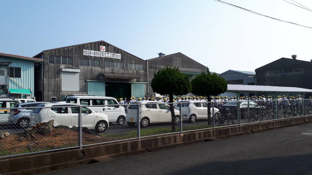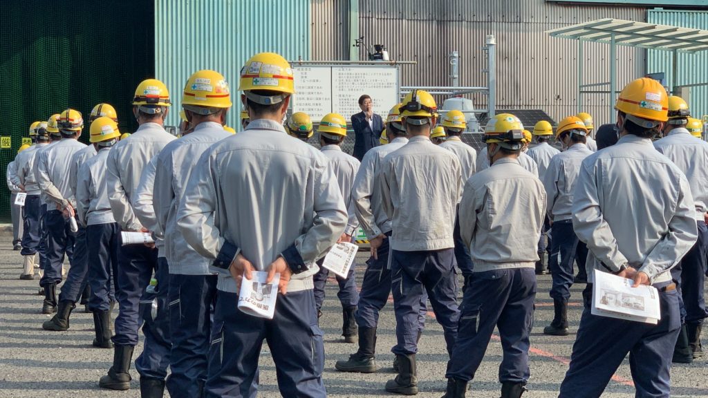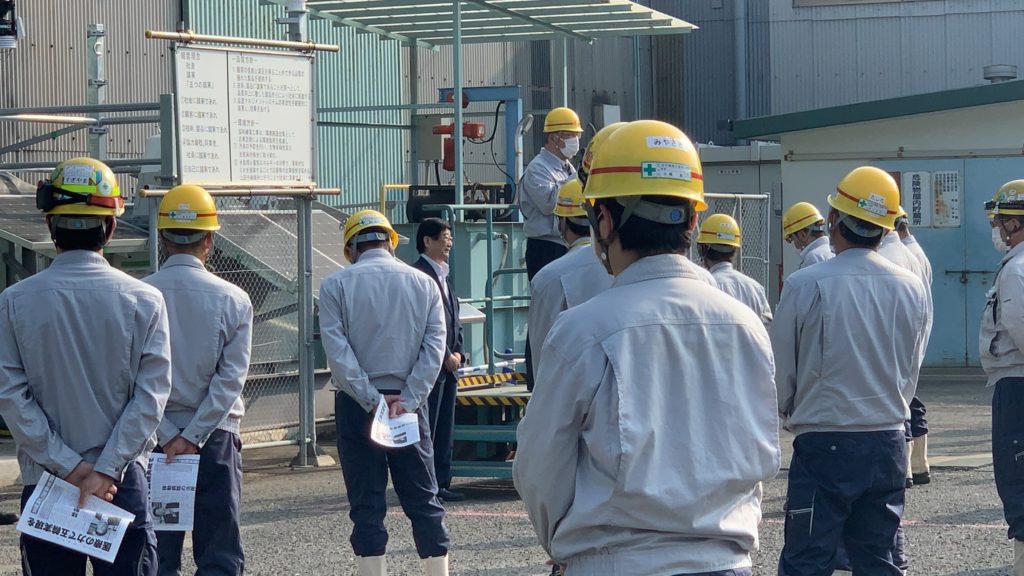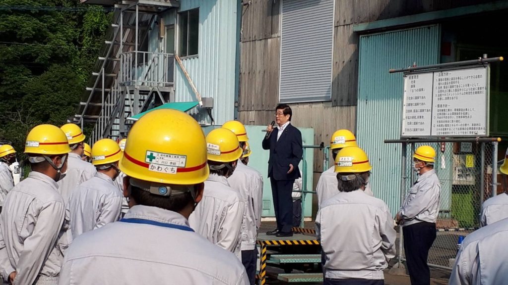 協和機電工業(株)の時津営業所の朝礼でご挨拶をさせていただきました。