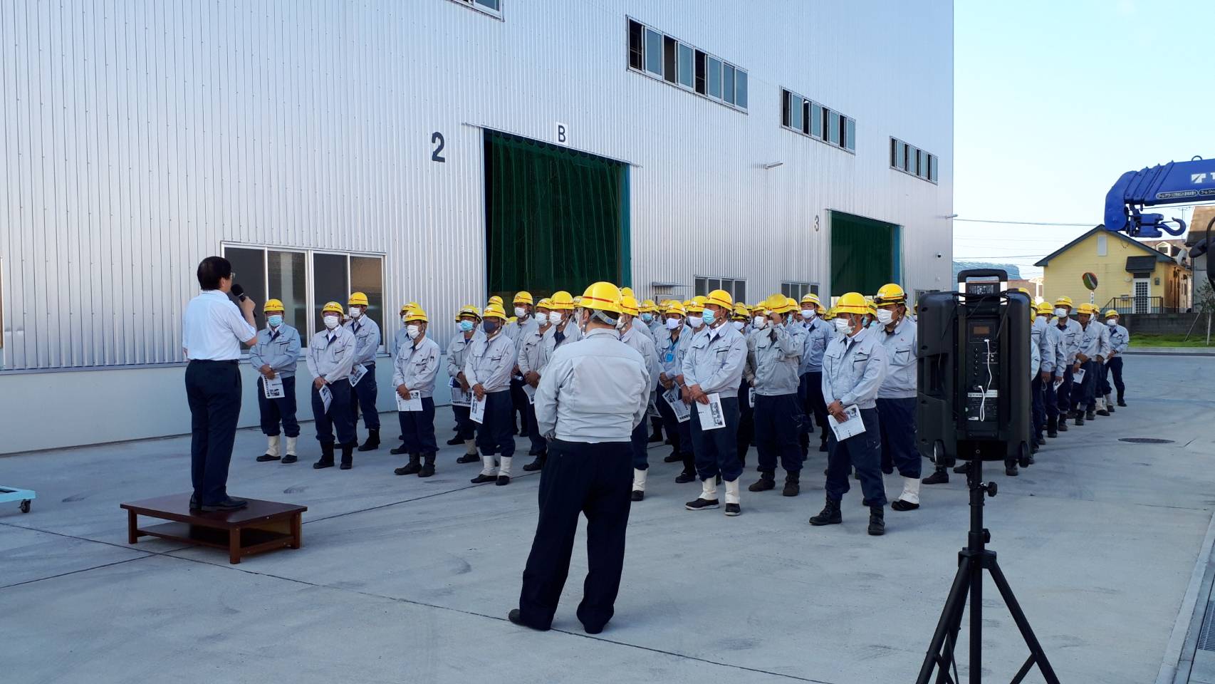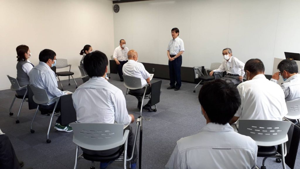 協和機電工業(株)三重事業所とグループ会社の(株)協環さん、機電プラント工事(株)さんの朝礼で、ご挨拶させていただきました。