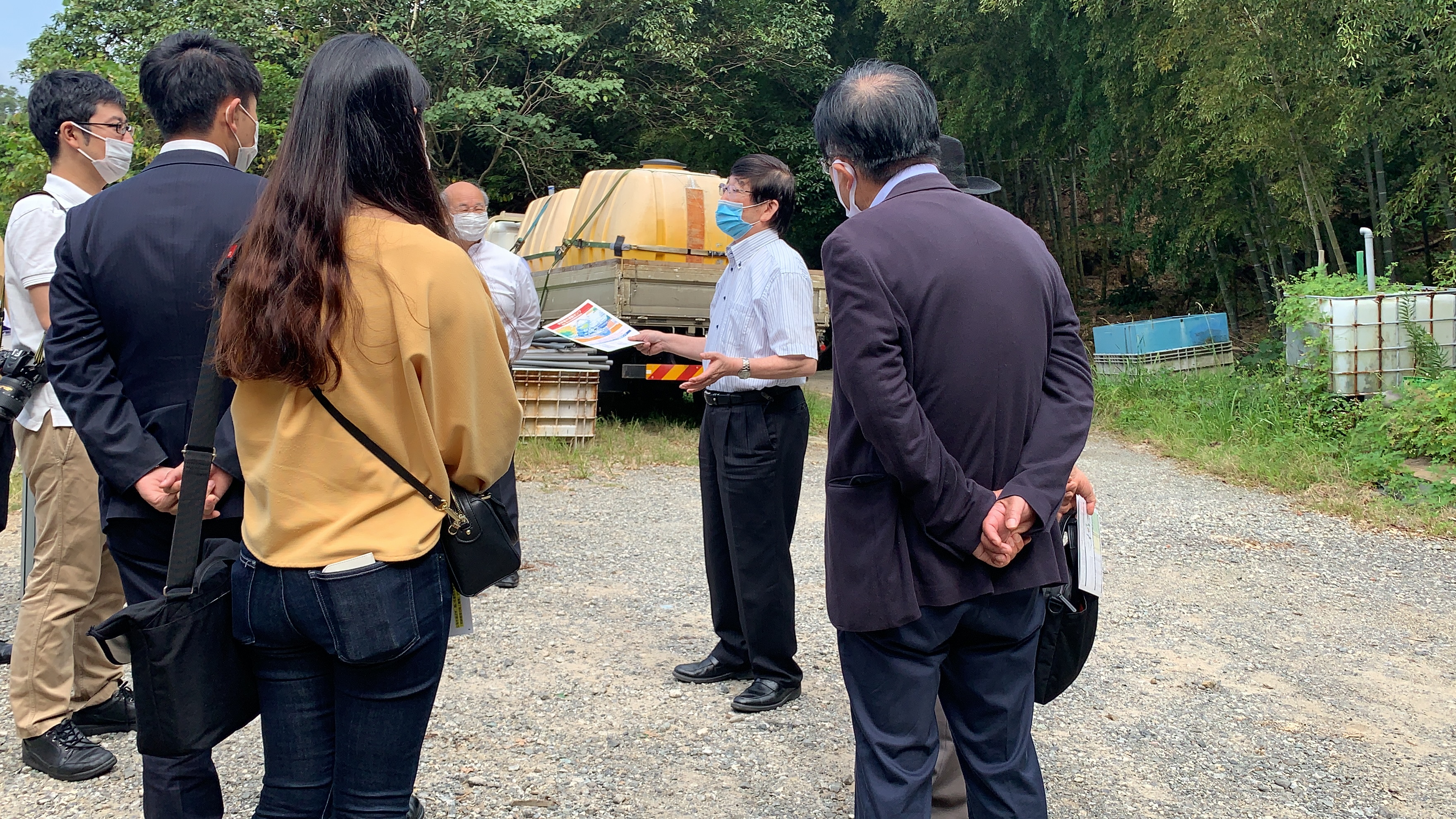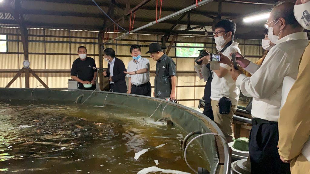 陸上養殖場の視察 地域活動 Twitter Facebook はてブ Pocket LINE コピー 2020.10.03 2020/10/3(土) 平和大使協議会の川口勝之会長さんと、事務局の今西さん、池田さんと三ツ山の陸上養殖場を視察しました。 マスコミの皆さんにも陸上養殖場に関する知識を深めていただきたく数名お誘いしました。
