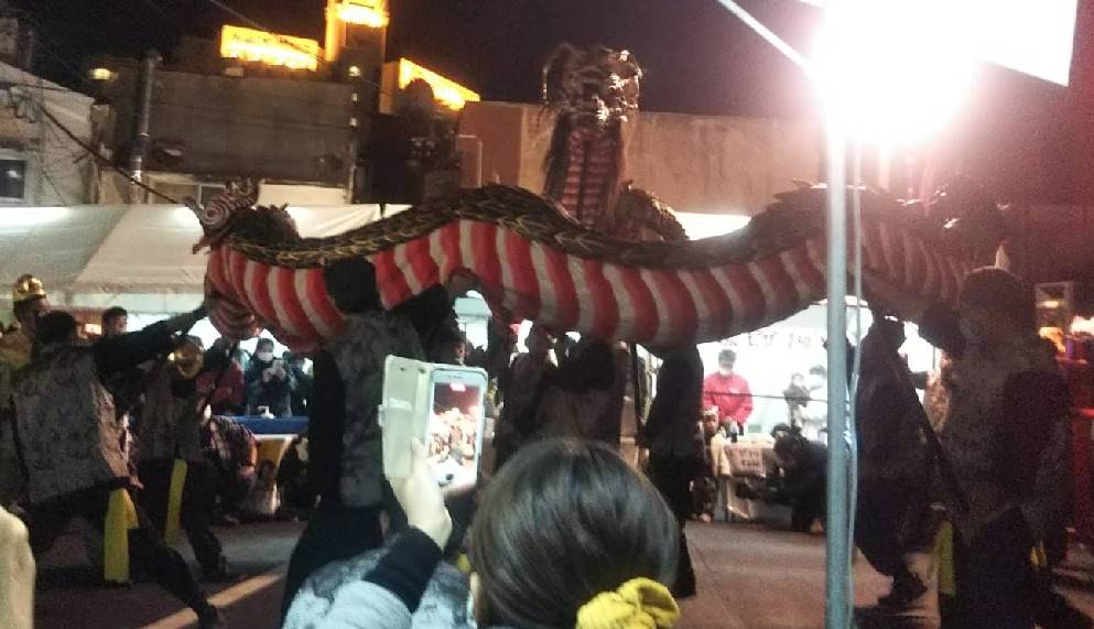 本石灰町自治会、思案橋横丁会、思案橋市会を中心として「思案橋くんち」と銘打った催しが開催されました。コロナ禍に負けず商店街の活気を取り戻していく一助になればと行われたものです。籠町龍踊り、銀屋町裾太鼓、樺島町太鼓山、本石灰町の囃子などが披露され楽しいひとときとなりました。私もご挨拶をさせていただきました、このようなイベントが商店街の活性化にはこれからも必要であることを強く感じました。