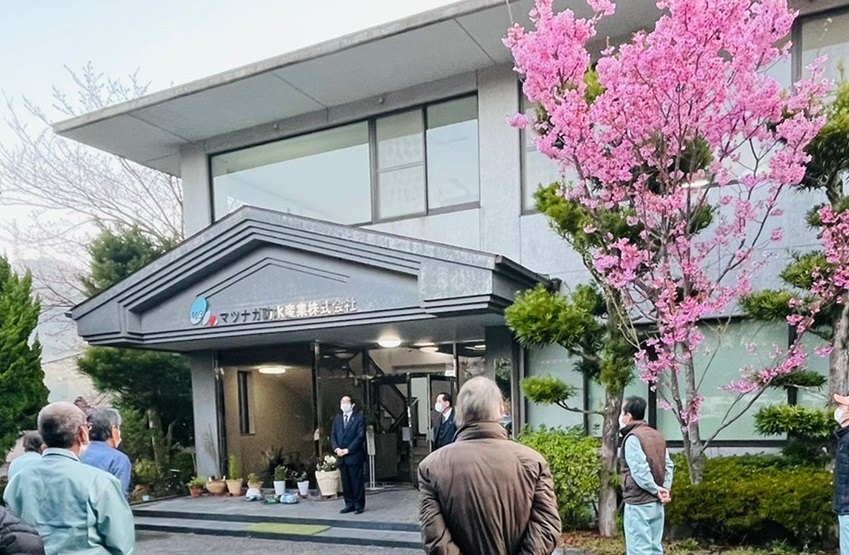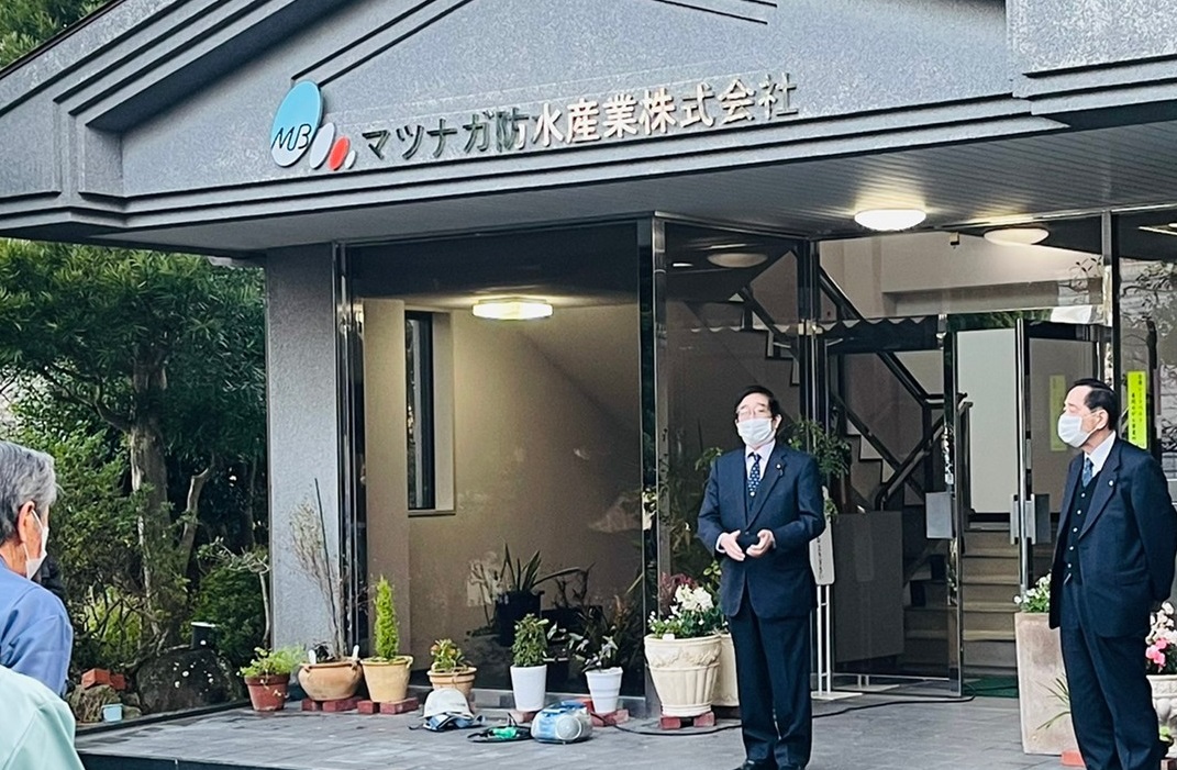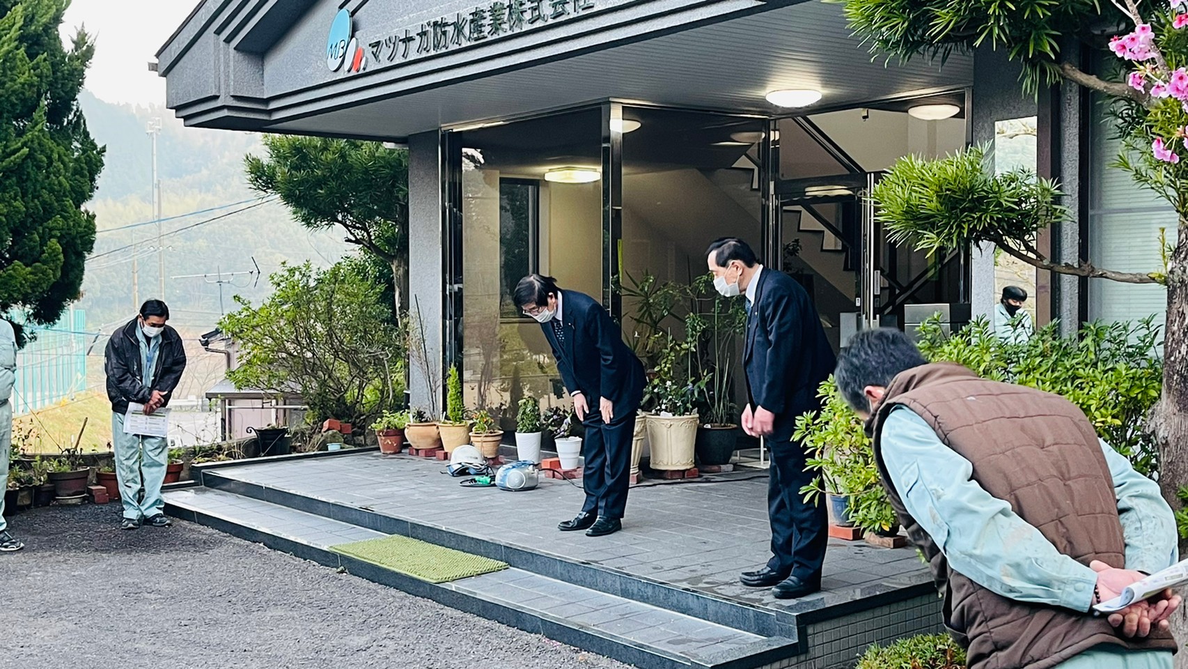 マツナガ防水産業株式会社 様の朝礼に参加し、ご挨拶をさせていただきました。
