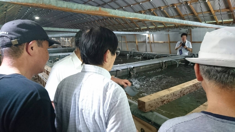 こちらの施設では閉鎖型の循環水槽を利用し、山の中でクエやシマアジ、フグ等の海水魚が養殖されています。