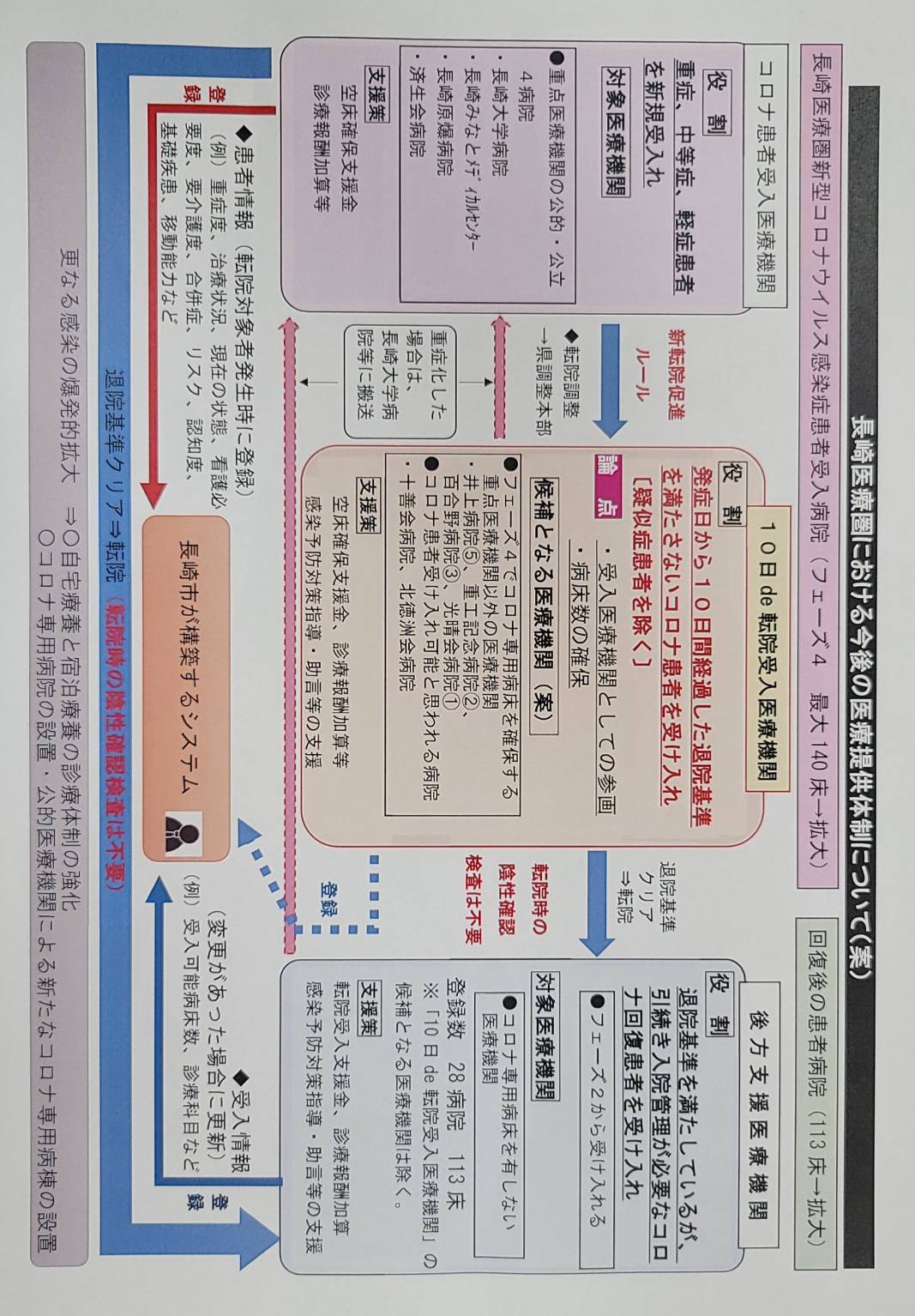 長崎での第3派の経験を基に、公的病院が果たしている一般急性期医療のひっ迫をできるだけ抑制するためにも、医療機関の協力体制構築が大切だと考えています。