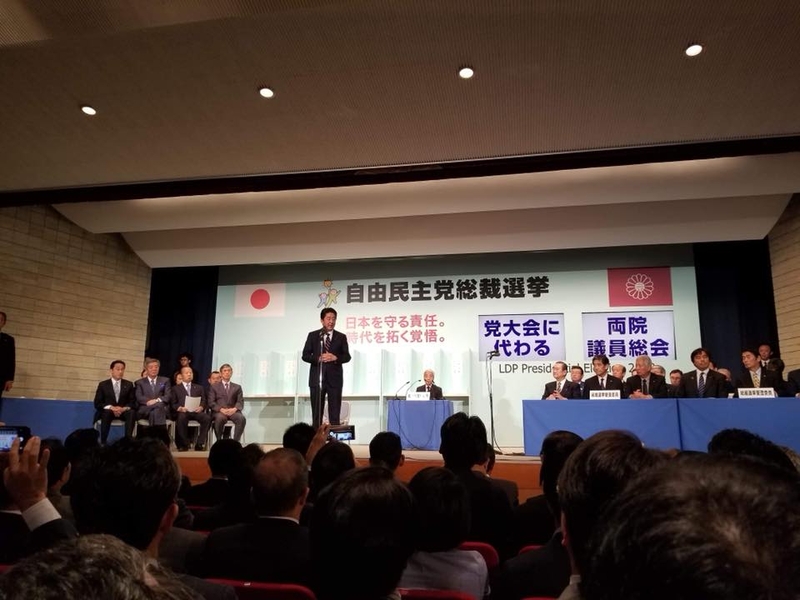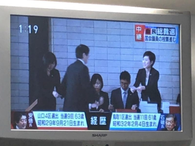 安倍総裁三選! 2018年9月20日(木) 未分類 Twitter Facebook はてブ Pocket LINE コピー 2019.08.262018.09.20 2018年9月20日(木) 安倍総裁の三選が決まりました。 議員票 安倍氏329 石破氏73 党員票 安倍氏224 石破氏181 合計 安倍氏553 石破氏254 長崎県は、安倍氏60.37%、石破氏39.62% 長崎県の党員投票率は49.79%でした。