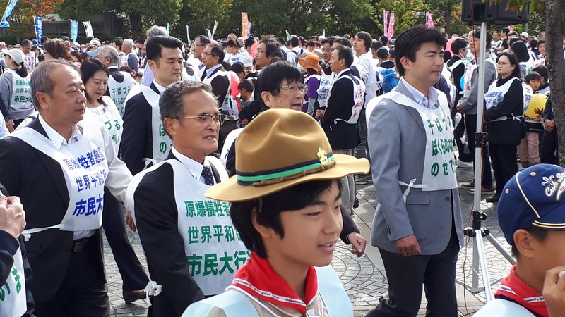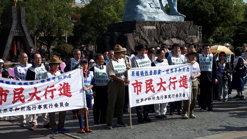 原爆犠牲者慰霊・世界平和祈念市民大行進 平和 Twitter Facebook はてブ Pocket LINE コピー 2019.08.262018.10.27 2018/10/27(土) 世界平和祈念行事実行委員会主催による世界平和を願う市民大行進が実施されました。 およそ35分間かけて、平和公園祈念像前から爆心地公園まで、核兵器のない平和な世界を願いながら市民の方々と共に行進いたしました。