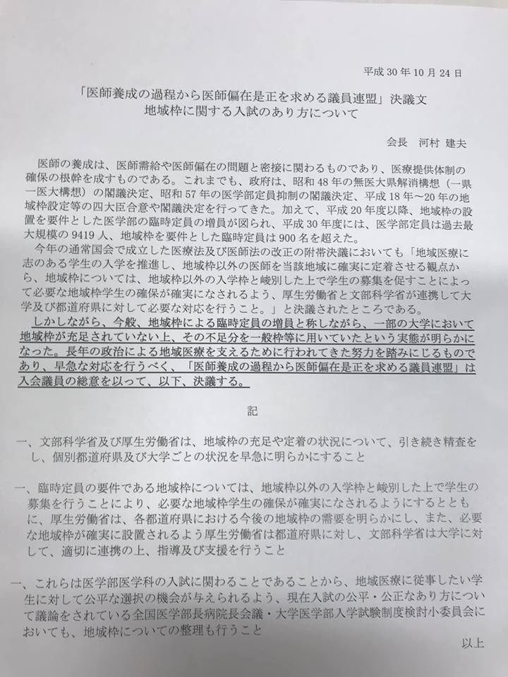 「医師養成の過程から医師偏在是正を求める議員連盟」根本厚労大臣へ申入 未分類 Twitter Facebook はてブ Pocket LINE コピー 2019.08.262018.10.31 2018年10月31日(水)17:40~ 河村建夫先生を会長、自見はなこ先生を事務局長とする、「医師養成の過程から医師偏在是正を求める議員連盟」としての決議文を、根本厚生労働大臣に申入れしました。 私からは、人口10万人あたりに対する医師数に関する他のOECD諸国との比較に基づく分析のお話をしました。