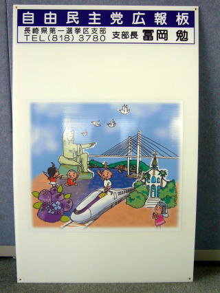 冨岡勉の自民党広報板を現在、約350枚貼り出しております。この広報板に、地域のイベントのポスターなどを貼り、皆様に活用していただきたいと思っております。 町内会、老人クラブなどの案内掲示板としても活用いただけます。 広報板を常設させていただける場所を募集しております。 また、広報板や掲示中のポスターがはがれている等にお気づきの方は、下記までご連絡をお願いいたします。 |